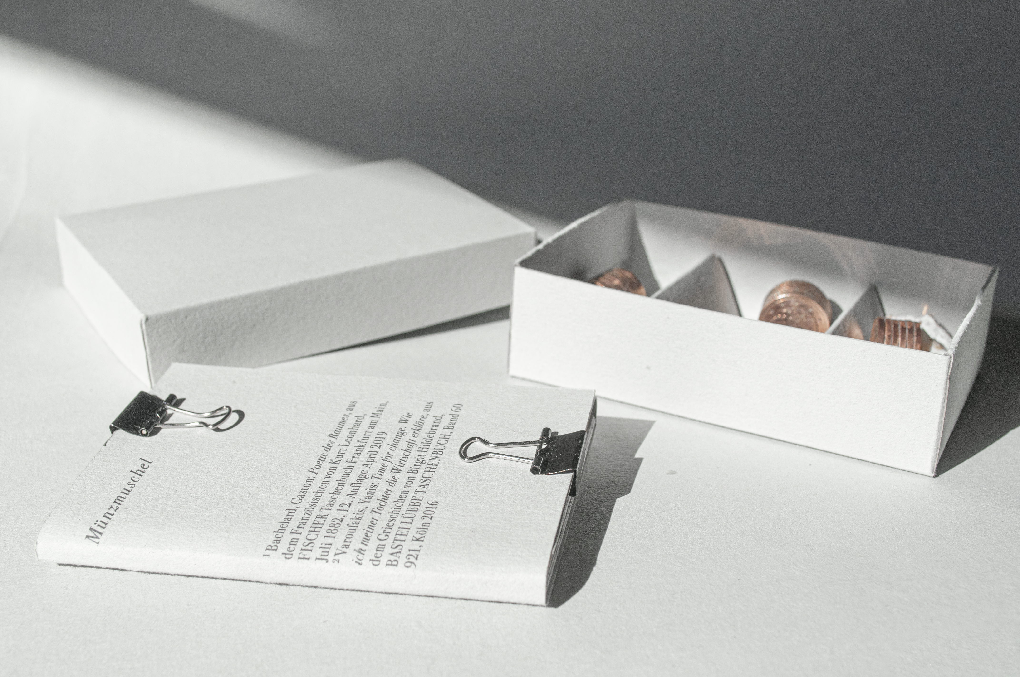 The work is about the definition of value and its reception by people. It includes text, images and miniature sculptures, that are presented in a tiny box. This editorial design creates a personal interpretation, combining two books: