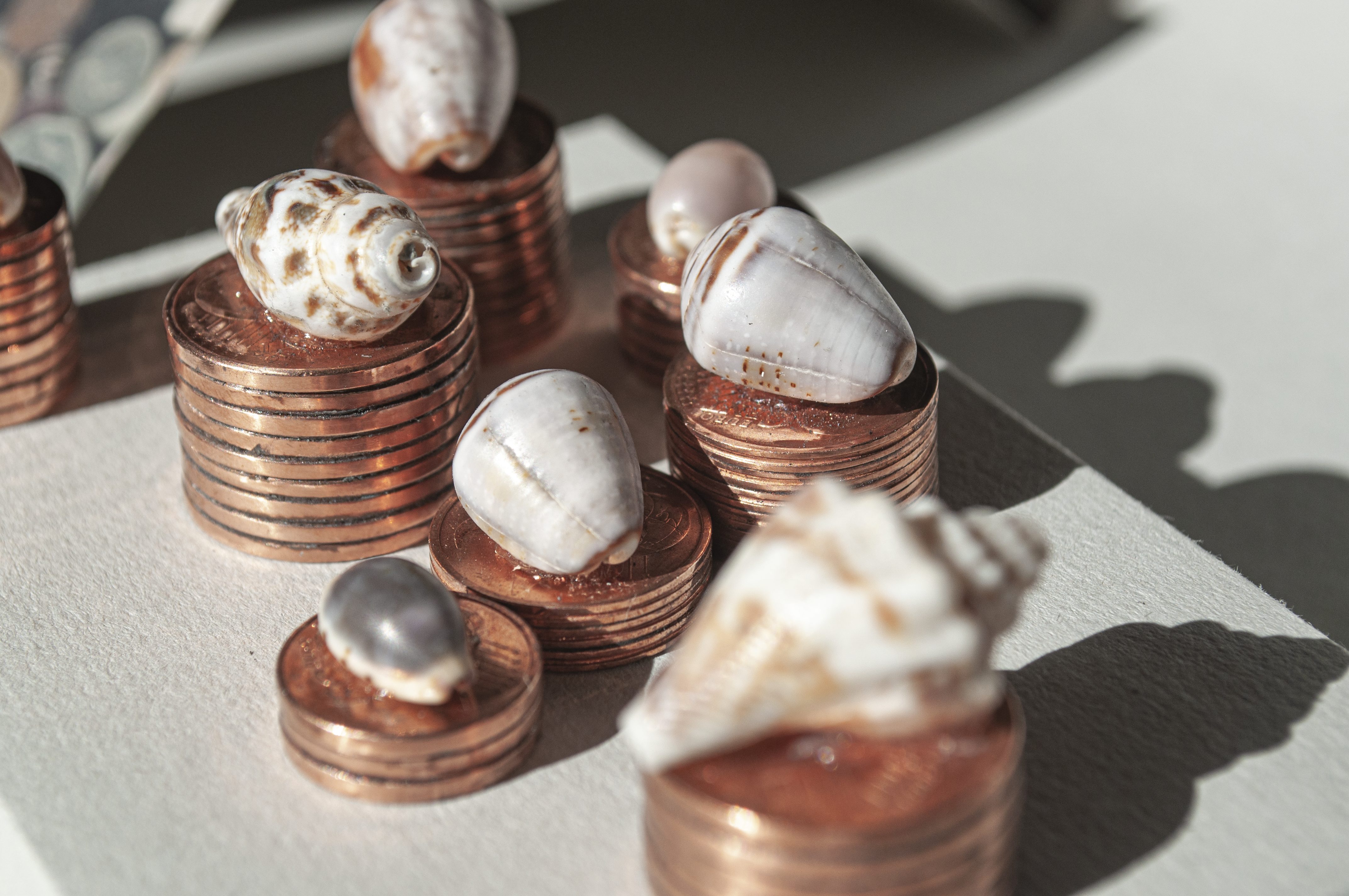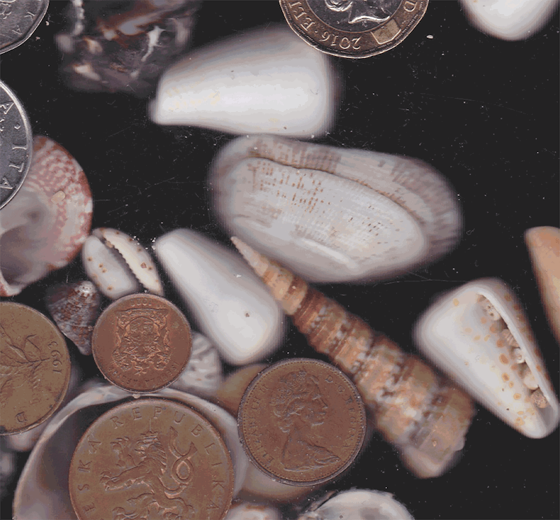 coins, shells, staples