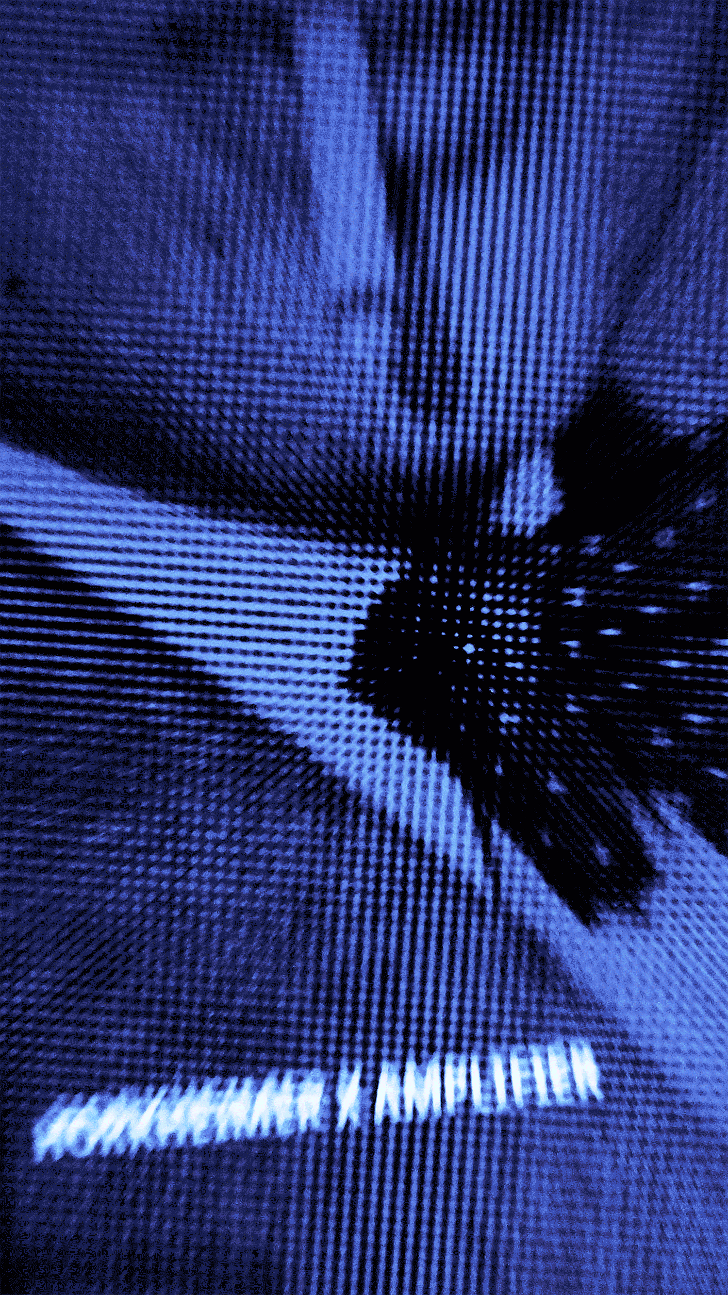 The final poster was presented and exhibited in the bar/club AMP in Frankfurt/ Main. The lettering „AMP“ on the poster was printed on it manually with yellow/orange linoleum paint.